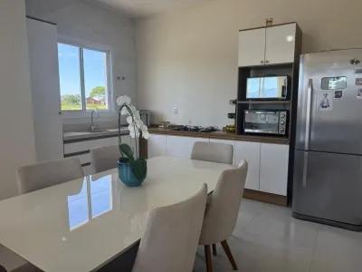 Distribuída em 03 dormitórios, sendo uma suíte, imóvel com área social toda integrada, sala de estar com lareira, ampla janela com ótima iluminação natural.