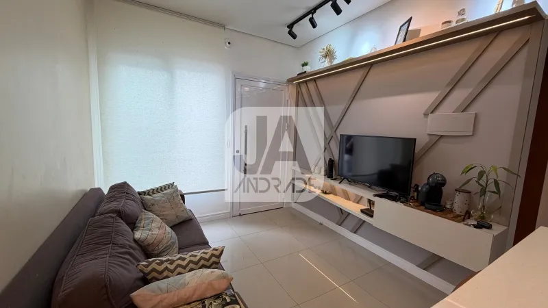 Dormitórios sendo 01 suíte, pronto para uso com cama, roupeiro e painel de tv, outro dormitório conta com um escritório pronto, mais um banheiro social.